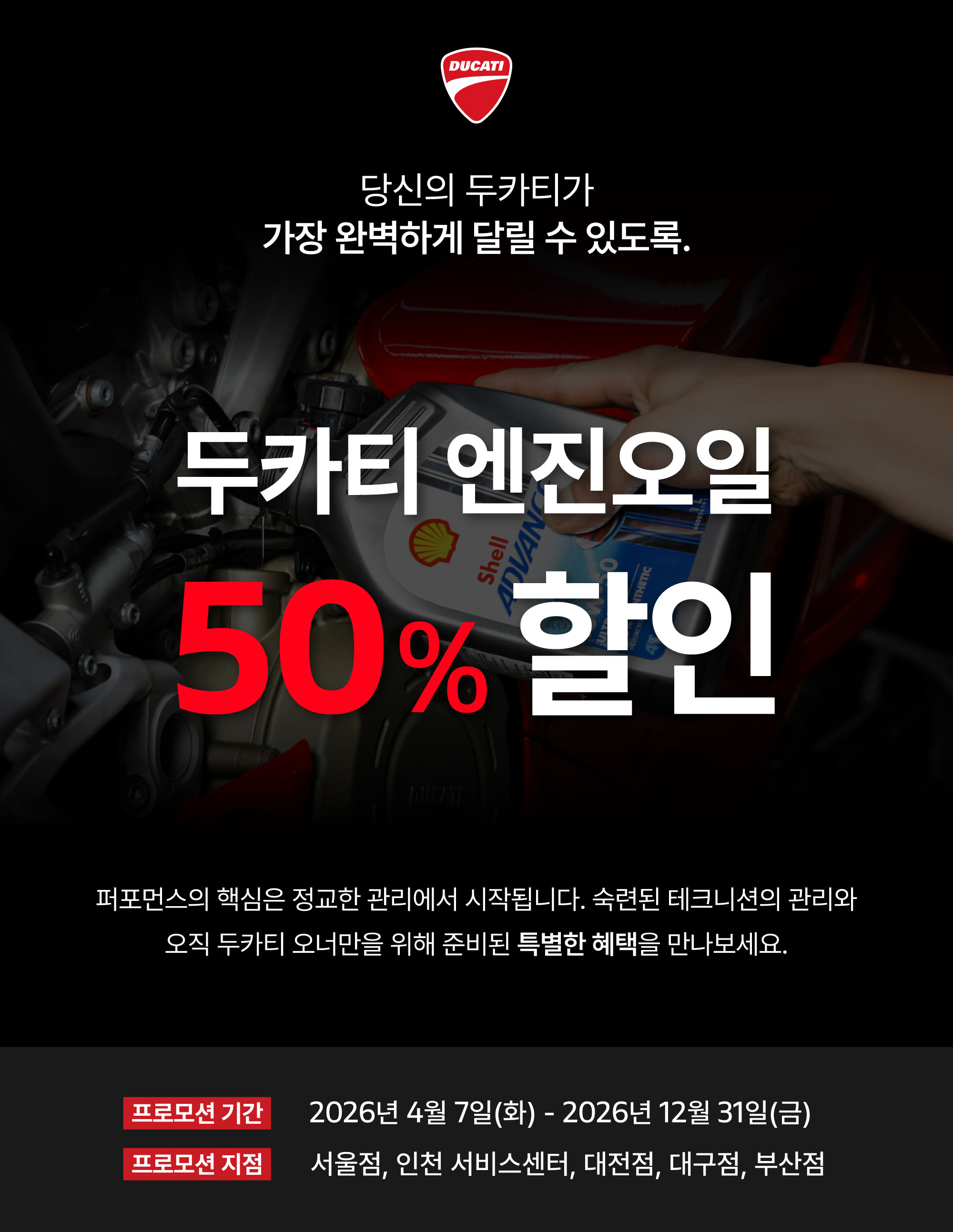 두카티 엔진오일 50% 할인 프로모션