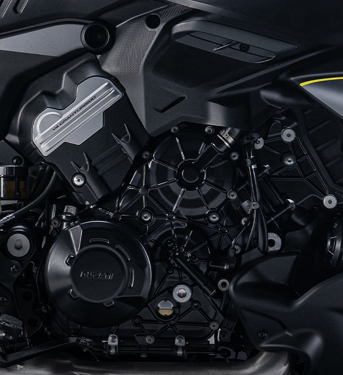 디아벨의 철학에서 엔진은 모든 것의 중심입니다. 성능, 개성, 그리고 스타일은 모두 엔진을 중심으로 전개됩니다. 이러한 이유로 두카티 디자이너들은 V4 그란투리스모 엔진에서 출발해, 이를 모든 디자인 요소의 핵심으로 삼았으며, 기계적 구조 자체를 두드러지게 드러내 하나의 차별화된 특징으로 완성했습니다.