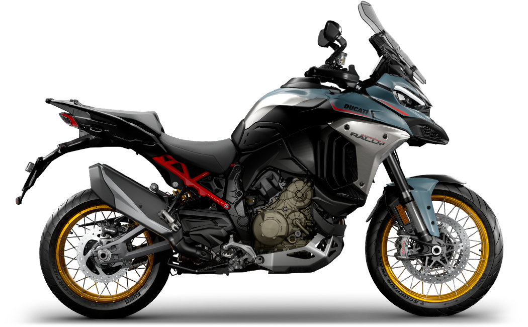 멀티스트라다 V4 랠리는 두 가지 리버리로 출시되며, 두카티 레드와 제이드 그린 컬러의 대비를 통해 강렬한 존재감을 나타냅니다.