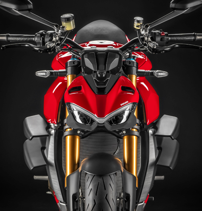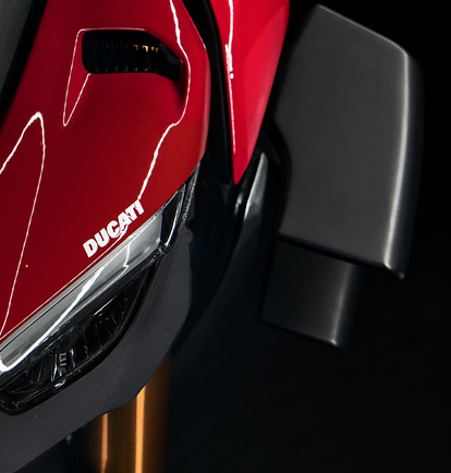 파니갈레 V4에서 페어링이 벗겨지고 핸들바가 높고 넓어진 형태의 새로운 스트리트파이터 V4는 최첨단 기술이 적용된 타의 추종을 불허하는 네이키드 형태의 디자인입니다.