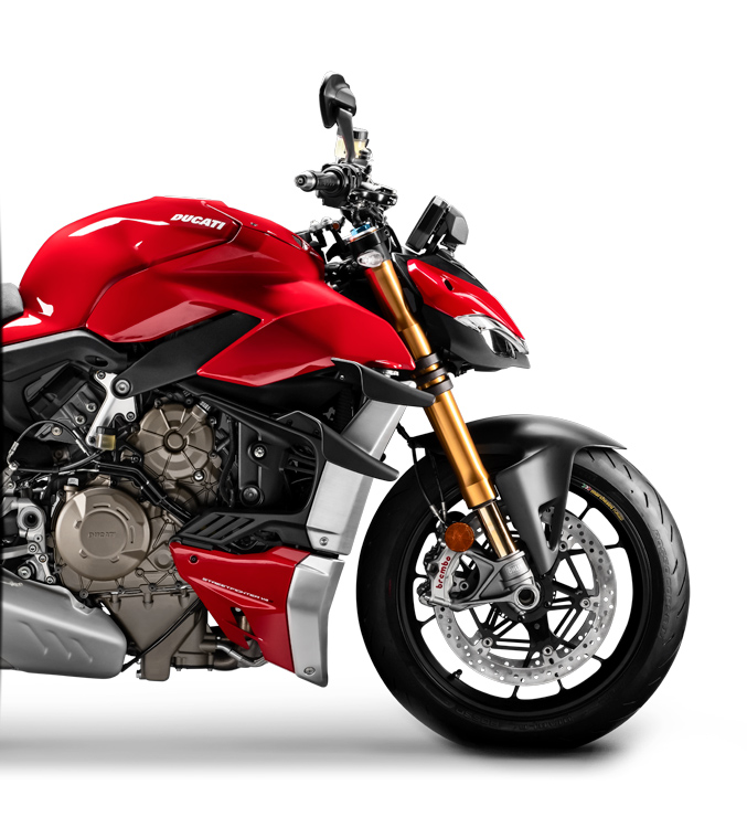 파니갈레 V4와 비교했을 때 지상고가 845mm인 라이딩 위치가 네이키드 바이크의 사양에 따라 수정되었습니다. 스트리트파이터 문화에 맞추어, 핸들바와 풋페그가 도심 내 주행시 스포츠 스타일의 편안함과 서킷을 다루는 데 필요한 컨트롤을 보장하는 높고 넓은 스타일로 수정되었습니다. 파니갈레의 많은 특징을 유지하면서, 뒷부분은 강철 서브프레임에 의해 지지되며 탠더머에게 보다 편안함을, 라이더에게는 보다 넓은 공간을 제공하도록 재설계되었습니다.