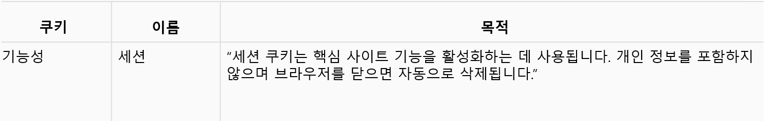 세션 쿠키는 예를 들어 사용자의 로그인 정보나 장바구니 항목을 기억하는 등의 사이트 기능에 활용합니다. 이는 웹사이트가 작동하는 데 꼭 필요한 요소입니다. 쿠키가 비활성화되면