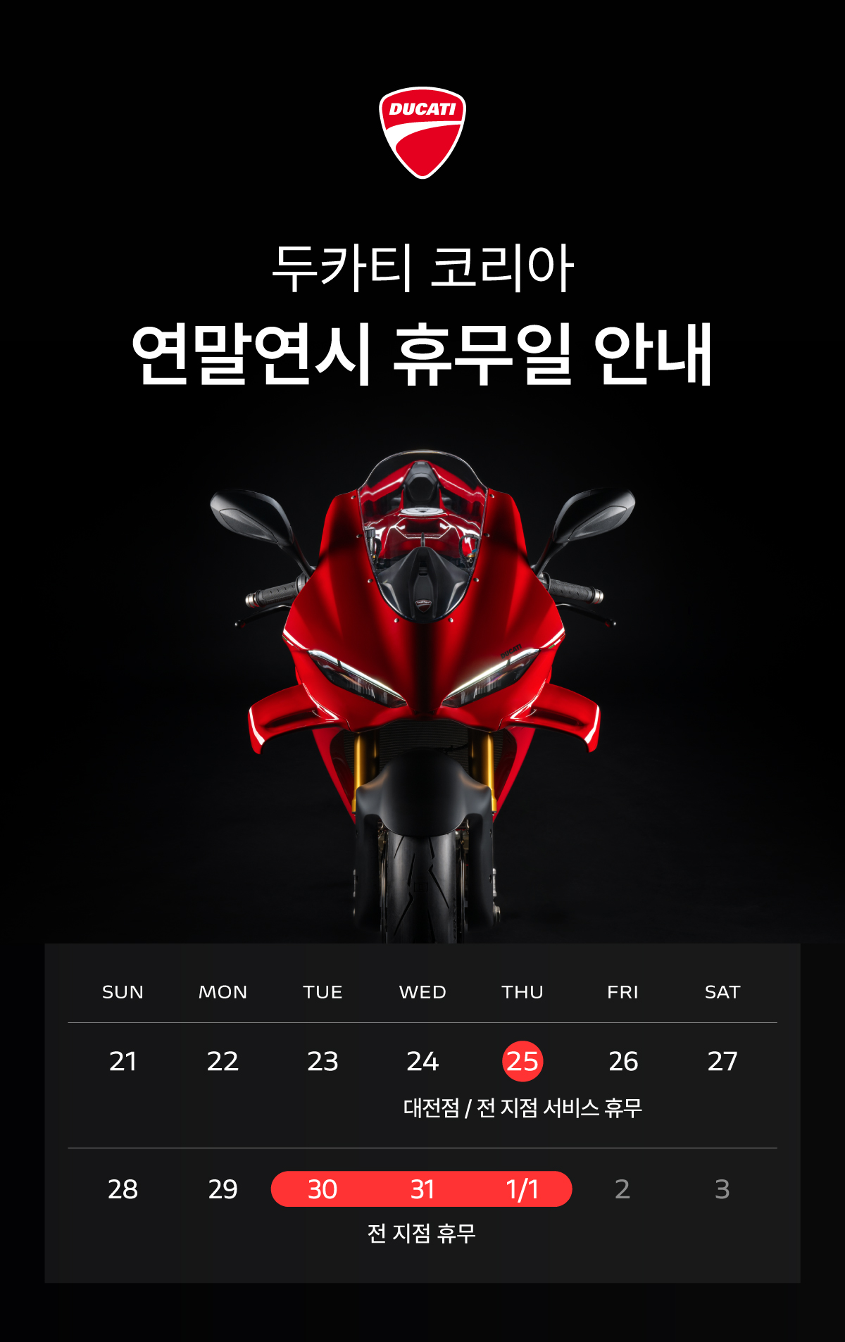 두카티 코리아 연말연시 운영 안내